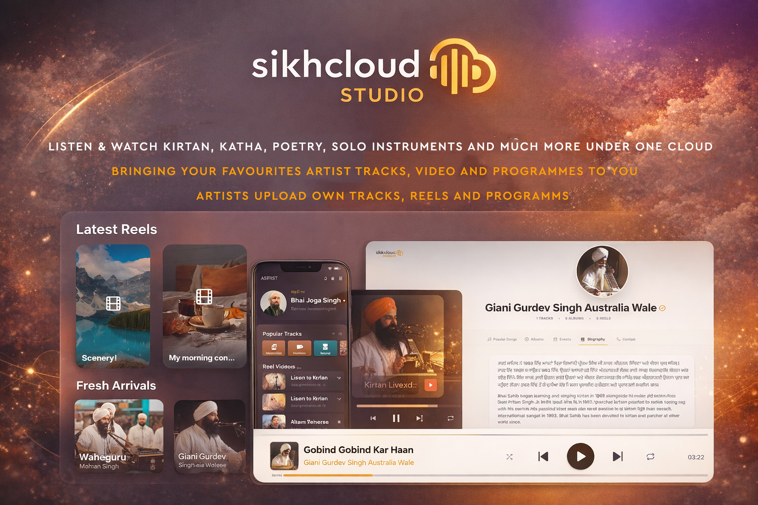 SikhCloud Studio is a free digital platform dedicated to preserving, promoting and sharing Sikh spiritual music, artistic expression and cultural heritage.